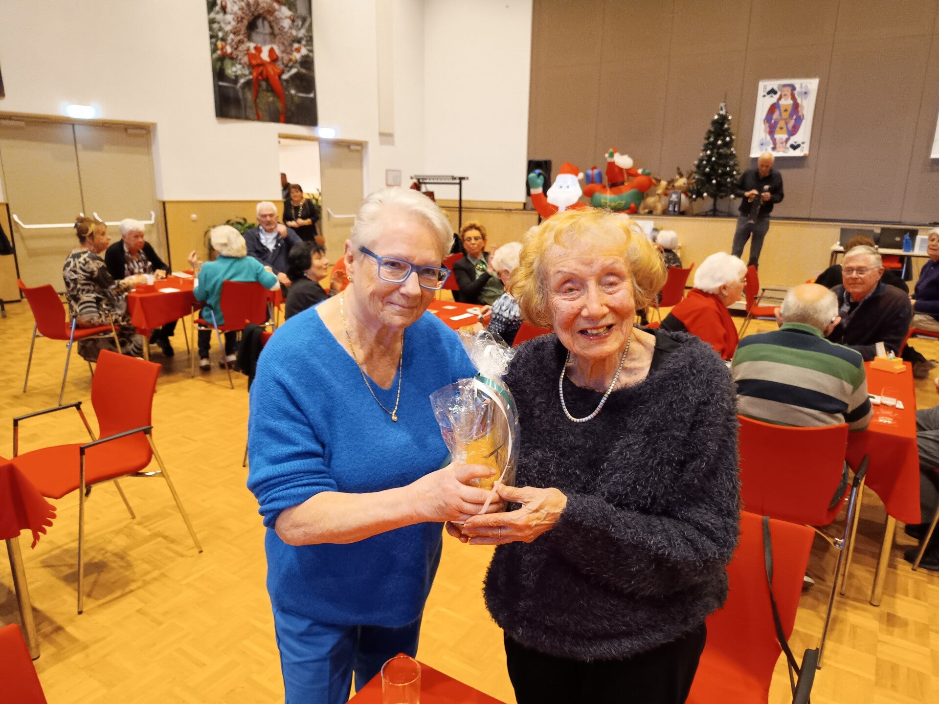 Het oudste kopppel Sonja Schols 93 en Ank Gales 91 worden in het zonnetje gezet.