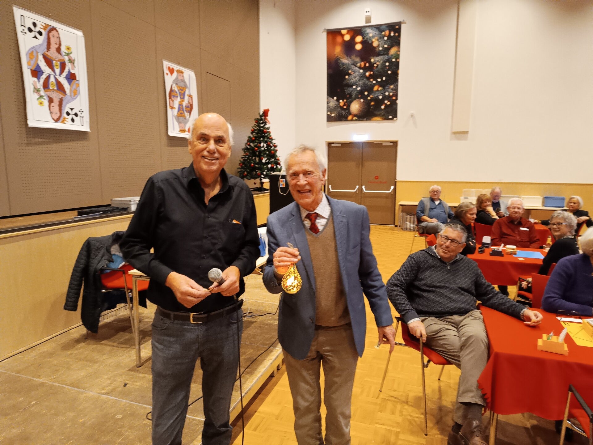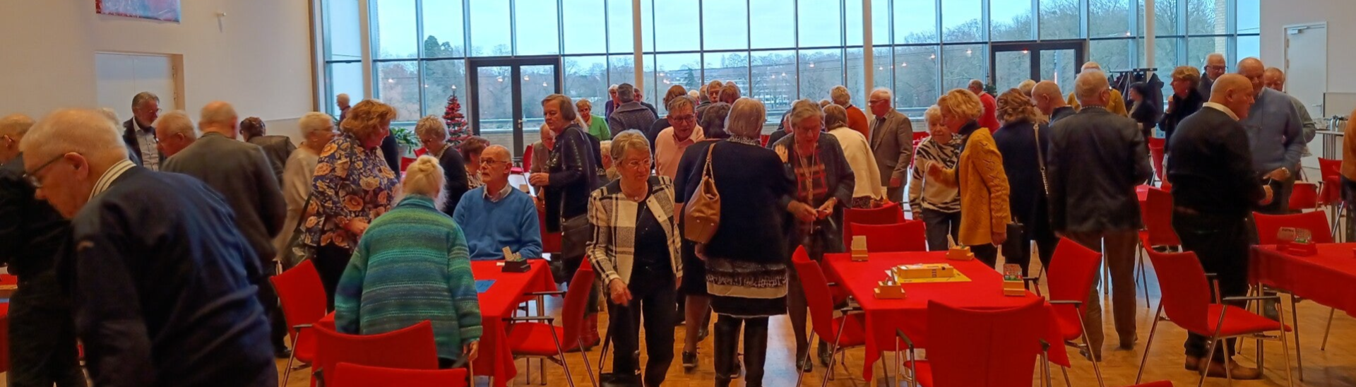De zaal ziet er weer prima uit. Nog even overleg. Wil: De wedstrijdleider