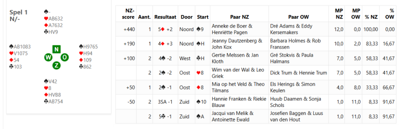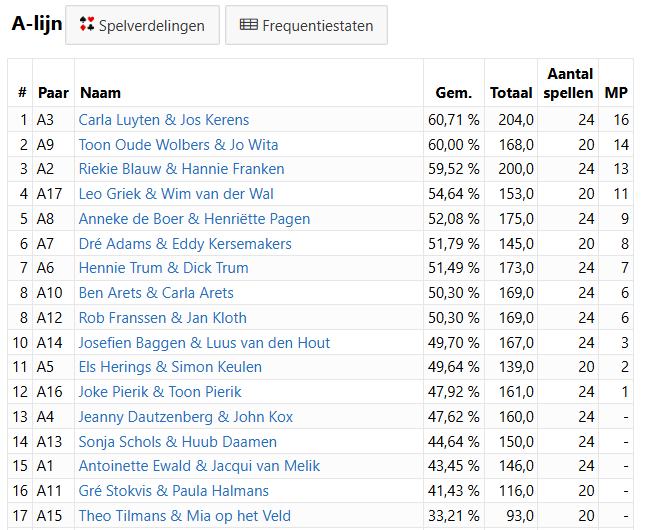 Vandaag, Dinsdag 20 januari is het de derde dinsdag van het nieuwe jaar. We hebben 17 paren in één lijn. Jo Wita is de wedstrijdleider.