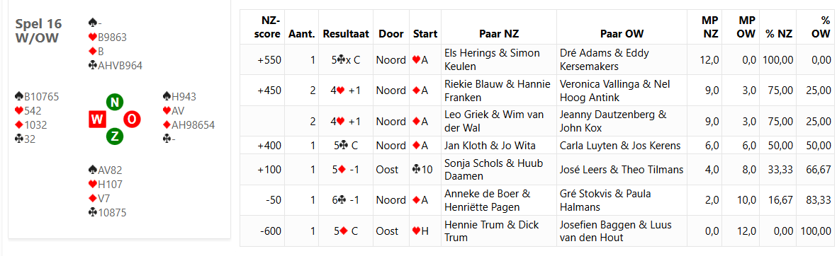 Vandaag, Dinsdag 27 januari is het de vierde dinsdag van het nieuwe jaar. We hebben 14 paren in één lijn.