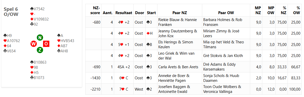 Veronica vraagt hier de azen en biedt 7 harten: