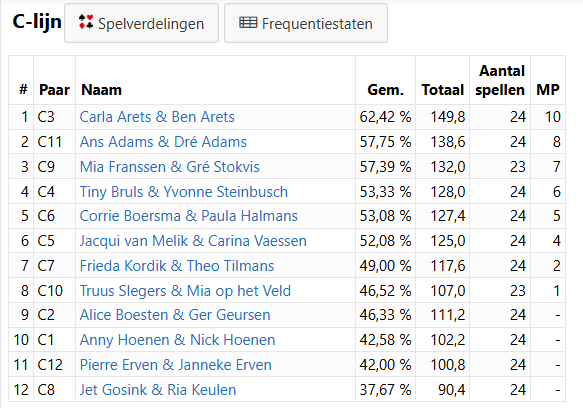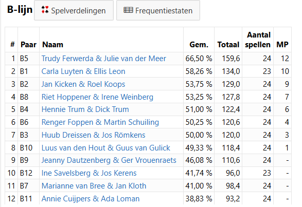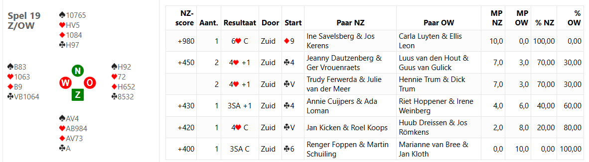 Het enige slem van de avond wordt gemaakt door Ine Savelsberg en Jos Kerens:
