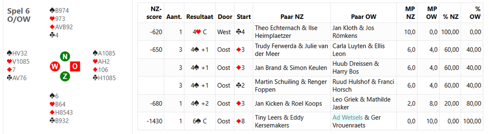 Alleen Ad en Ger, in de B- lijn, bieden slem op spel 6 :
