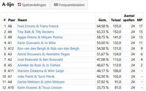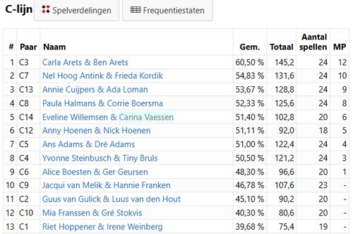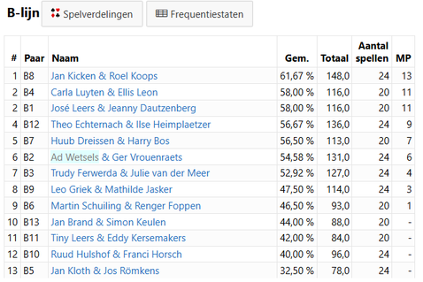 We hebben 12 paren in de A- lijn en door vervoersproblemen twee maal 13 paren in de B- en C- lijn.