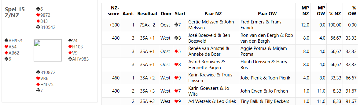 Onder andere weten Jet & Ria in de C- lijn hier keurig in 6 schoppen te belanden: