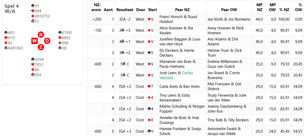 Er zijn 92 mensen, 14 paren in de A- lijn, 16 in de B- en 16 in de C- lijn. We spelen topintegraal.