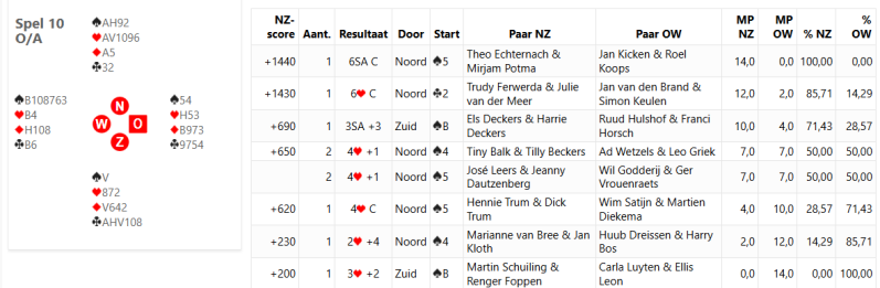 De derde combi-avond viertallen-paren vanavond. Sticky Fingers (Frans Franck, Fred Ermers, Gertie en John Melssen) winnen met 17-3 (71-30 in Imps) van Ratje toe ( Karin Goevaers en Jo Wita met Truus Linssen & Anneke de Boer) en Doe maar , bestaande uit John Erven & Jo Frehen met Astrid Brouwers & Henriëtte Pagen zijn de winnaars met 16-4 (55-21) tegen de Koempels ( Joke & Toon Pierik met Ron & Rob van den Bergh).