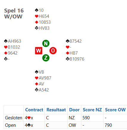 Bij de paren hebben we 2 lijnen. Eén van 16 en één van 14 paren.Meteen op spel 1 al slem:
