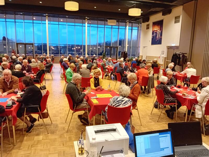De zaal ziet er weer prima uit. Nog even overleg. Wil: De wedstrijdleider