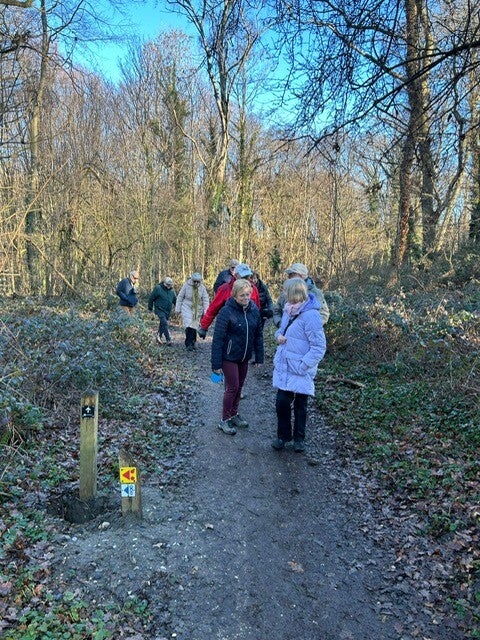Vandaag, woensdag 25 februari, in prachtig windstil en zonnig weer 6,5 kilometer met 12 deelnemers gewandeld in het park van Ubach Palenberg.